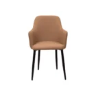 Upgrade your dining space with the Handverk Dining Chair, featuring comfortable PU leather upholstery in Walnut or Beige. This chair is designed with sturdy black metal legs, offering a modern look with lasting durability.