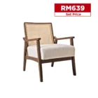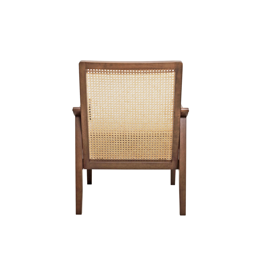 RM233 x 3 Months The Vadmir Armchair (Walnut) combines mid-century modern and natural style with everyday comfort. Designed with a sturdy wooden frame in a rich walnut finish, it features a woven rattan backrest that adds warmth and character.