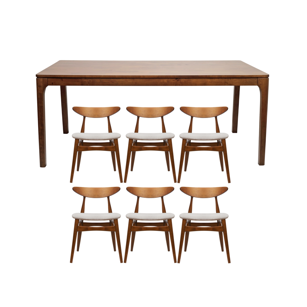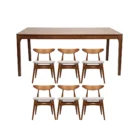 RM613 x 3 Months The Modern Simplicity Dining Set embodies the essence of refined minimalism — where timeless craftsmanship meets everyday comfort. Featuring the Solveig 1.8M Dining Table and six Marie Dining Chairs, this set combines smooth silhouettes, warm wood tones, and inviting textures that make every meal feel relaxed and elegant.