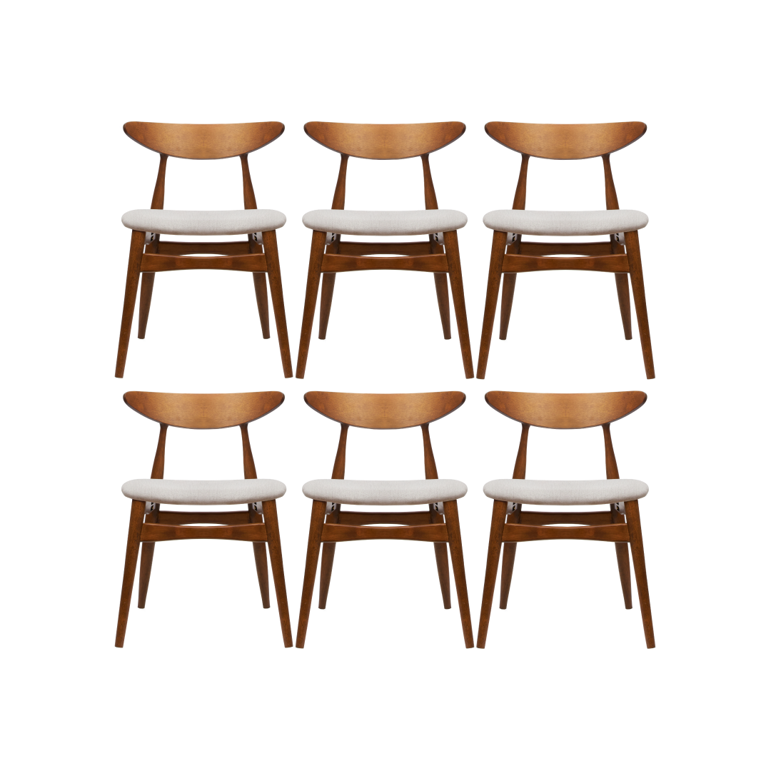 The Solveig Dining Table is crafted with clean lines and subtly curved edges, offering a sturdy yet graceful presence. Its natural walnut finish enhances the beauty of Malaysian oak, creating a versatile centrepiece that complements both modern and classic interiors. Paired with the Marie Dining Chairs, which feature gently curved backrests and cushioned seats, the ensemble balances simplicity with sophistication.