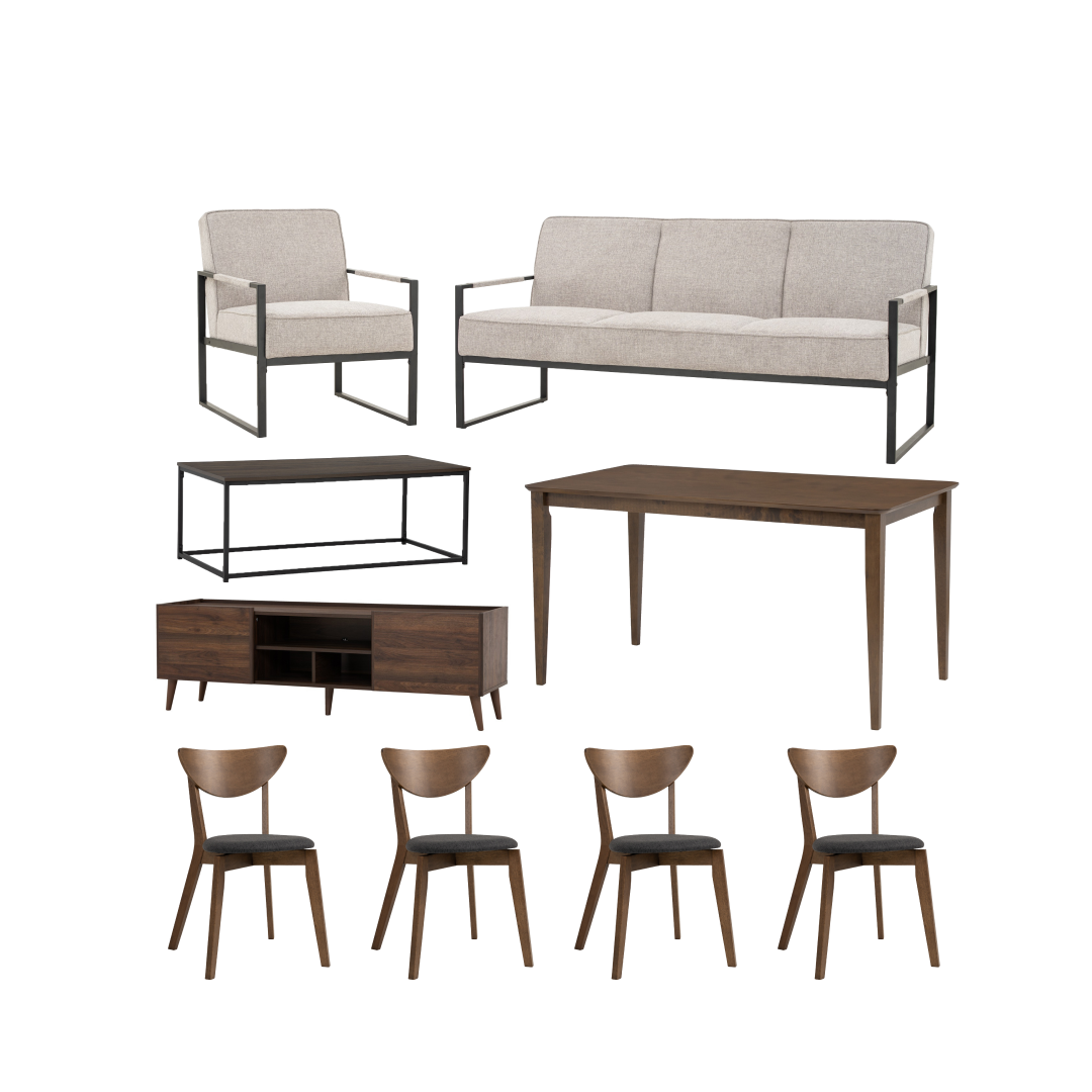 Ideal for those who appreciate modern comfort with a bold urban twist, the Urban Loft Concept offers a ready-made solution to elevate your living and dining spaces with ease.