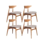 Paired with the Marie Dining Chairs, each chair showcases a sculpted wooden backrest with gently curved lines and cushioned fabric seating for everyday comfort. The combination of wood and soft upholstery creates a harmonious blend of minimalism and warmth.