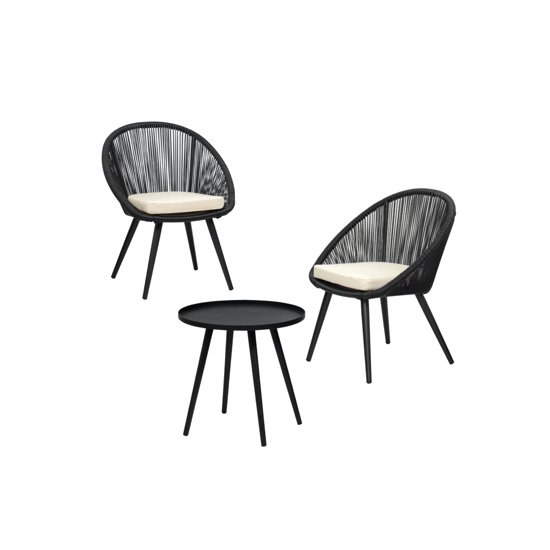This set is ideal for outdoor patios, balconies, or living rooms, bringing a sleek and minimalist touch. The clean lines and contemporary design make it an excellent fit for Scandinavian, Modern, and Industrial interiors.
