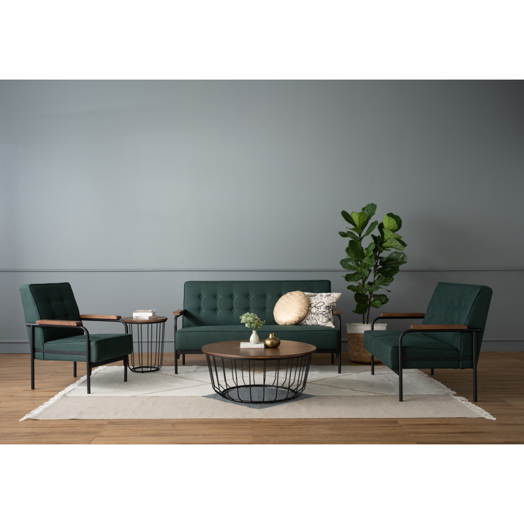 Upholstered in Doublet fabric in a soft Green finish, the sofa brings understated elegance to any living space. Its supportive cushioning and ergonomic seat height provide the ideal balance between comfort and style — perfect for everyday lounging, guest seating, or curated modern interiors.