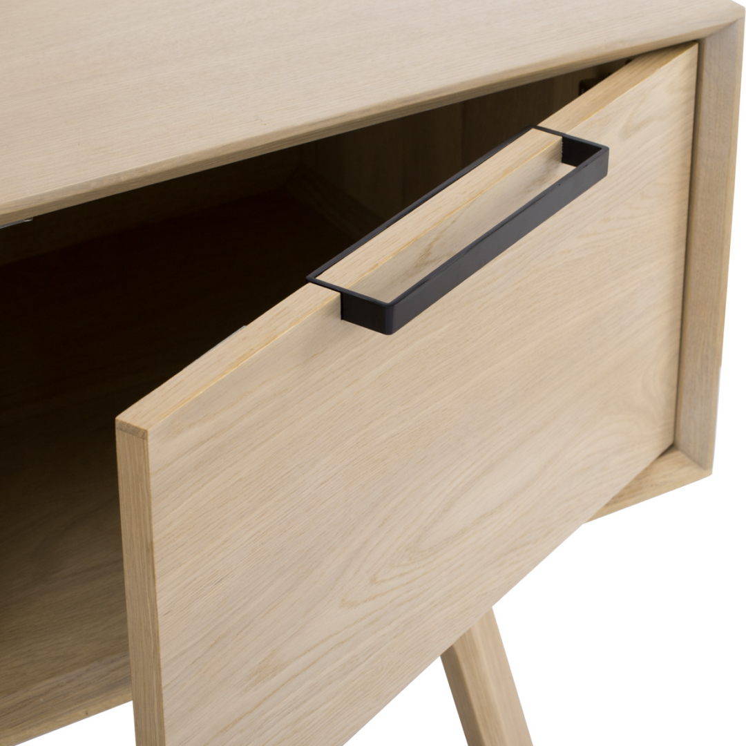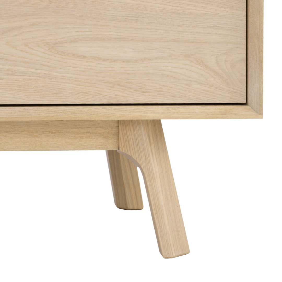 RM229.67 x 3 Months Bring warmth and timeless elegance into your living space with the Noud 1.5M TV Cabinet, a refined piece inspired by Mid-Century Modern design. Featuring a full oak veneer body paired with solid oak legs, this cabinet showcases natural wood grain textures that instantly elevate modern interiors.