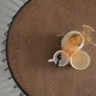 RM76.33 x 3 Months Elevate your living space with the Gabbia Round Side Table, a stylish accent piece that blends Mid-Century Modern charm with subtle Art Deco elegance. Designed with a warm natural veneer top and supported by sleek matt black epoxy metal legs, this table delivers the perfect balance of texture and contemporary refinement.