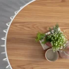 RM76.33 x 3 Months Elevate your living space with the Gabbia Round Side Table, a stylish accent piece that blends Mid-Century Modern charm with subtle Art Deco elegance. Designed with a warm natural veneer top and supported by sleek matt white epoxy metal legs, this table delivers the perfect balance of texture and contemporary refinement.